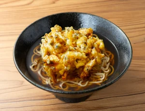 熱々で香ばしいあさりかき揚げを、濃厚なつゆに絡めたそば。